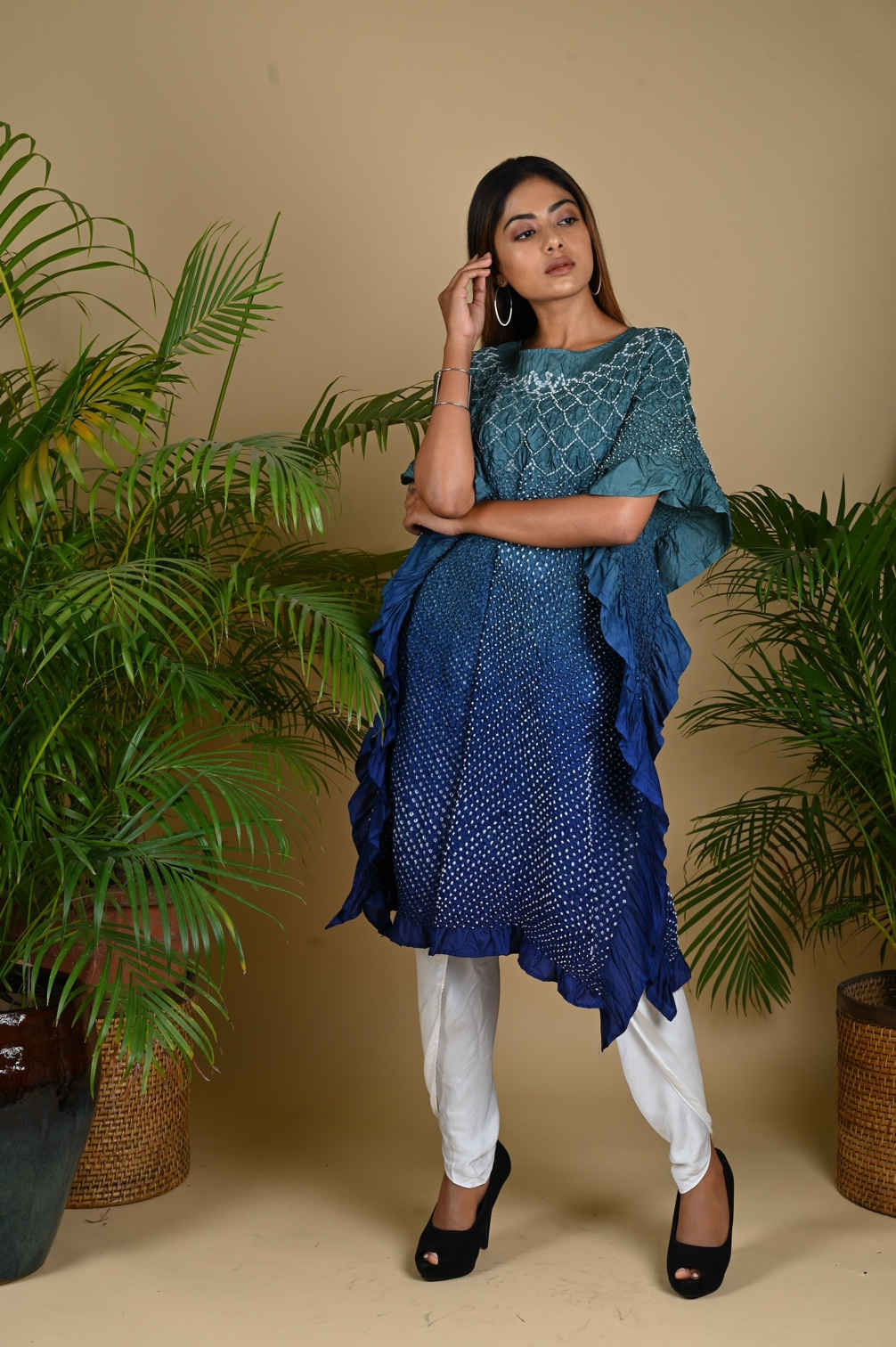 Sunflower Kaftan-Grey & Indigo Blue Shaded