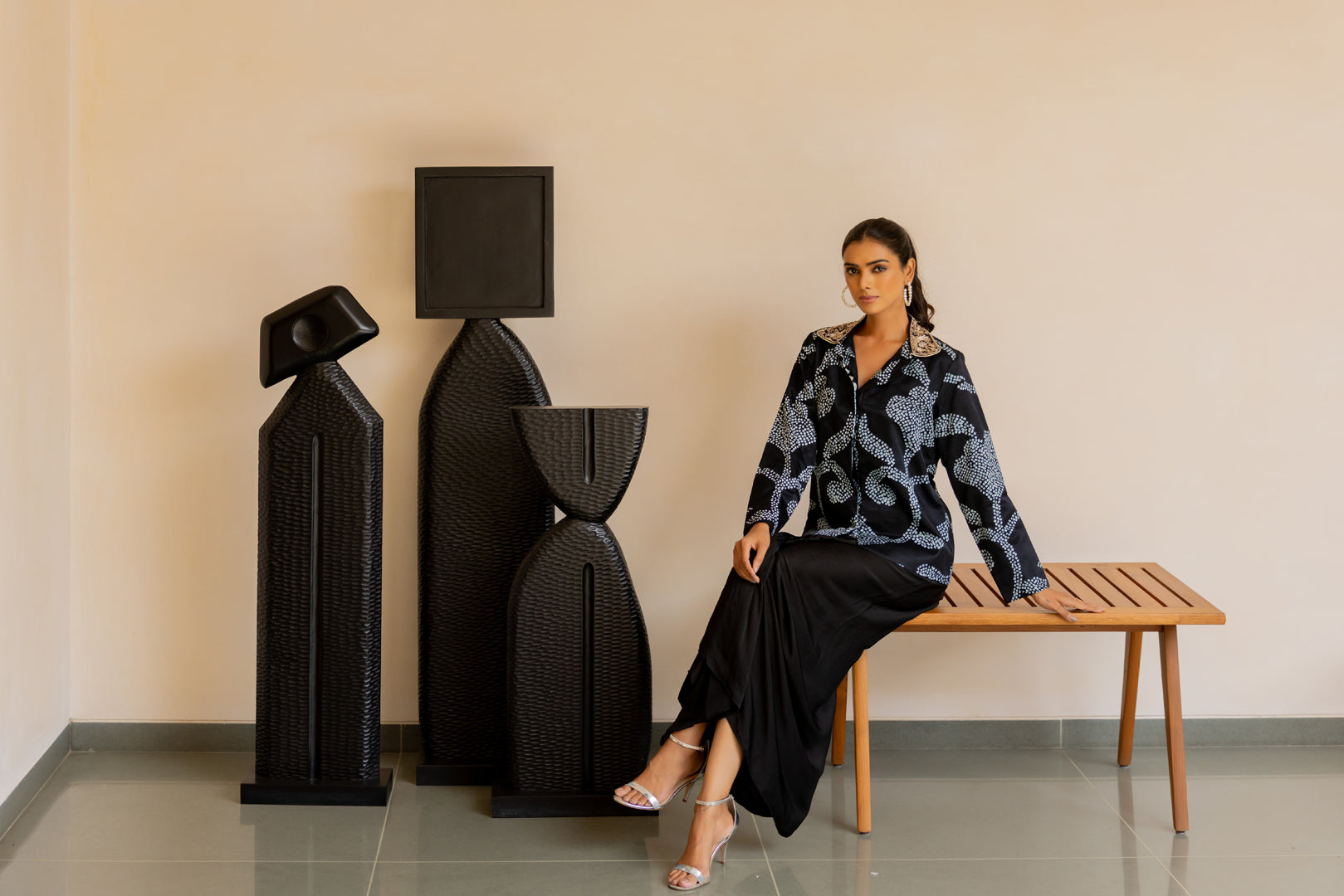 RYE BANDHANI STRUCTURED JACKET WITH AN EMBROIDERED COLLAR