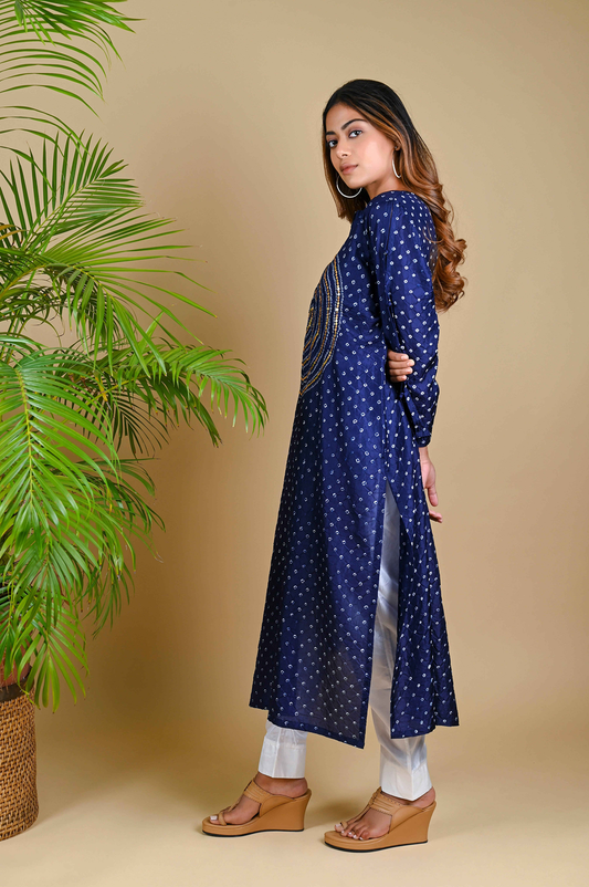 Circle Sequence Kurta-Indigo Blue Shaded